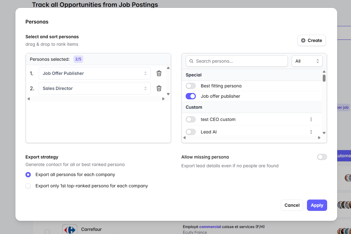 Sélectionnez vos Buyer Personas pour affiner la recherche.